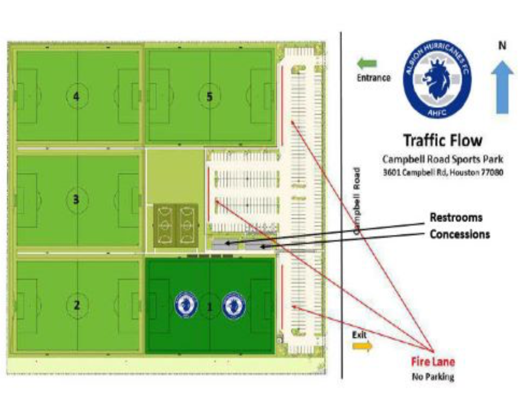 Welcome to Campbell Road Sports Park, a premier sports facility designed for athletes and teams of all levels. Conveniently located on Campbell Road between Clay Road and Kempwood Drive—with easy access from Beltway 8, I-10, and Hwy 290—our park features two regulation-sized turf fields ideal for field hockey and soccer, two 5v5 mini-fields, and three full-sized grass fields, all maintained to the highest standards. Visitors enjoy the comfort of indoor restrooms, free paved parking, bleacher seating, and a concessions stand. The park also includes a dedicated classroom space for film review and team meetings, making it the perfect venue for both training and competition.